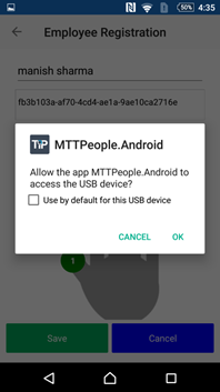 - Once we attach Bio Metric device with the Mobile, it given an alert to allow the device to communicate with the app, so user needs to click on allow button.