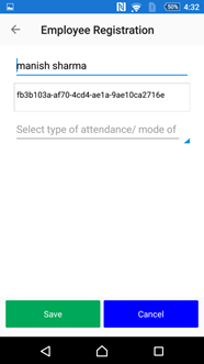 - If user select the type of device as Scan through Mobile than app will allow him to punch his/ her attendance using his Mobile’ Finger Scanner.