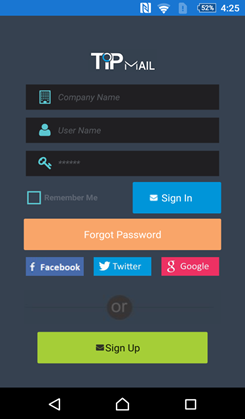 - Enter company name in first text box as indication to, Enter user name and password than click on Sign In button given at the login page of this app.