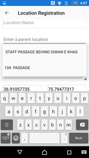 - In place of Parent Location drop down menu, it will display the name of locations which is already open/ available to get registered. So admin needs to register Parent Location first through the mobile app.
